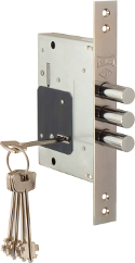 Замок врезной цилиндровый для металлических дверей с поворотными ригелями. С подшипником.