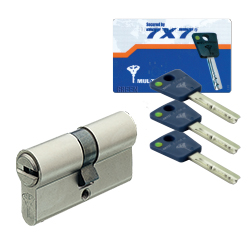 В цилиндрах Mul-T-Lock 7x7® правильное расположение контактов и драйверов, необходимых для вращения ротора облегчается за счет типичной технологии и точности качества Mul-T-Lock. Высокая безопасность обеспечивается наличием стальных штифтов и их специфической формы Antipick, большого количество комбинаций.