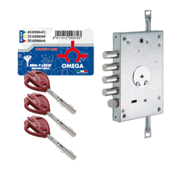Замок Mul-T-Lock «OMEGA Plus» OFCPB2 3-х канального запирания с двумя механизмами в одном корпусе: роторным и цилиндровым. В дополнительной части механизма замка необходимо использование флажкового цилиндра европейского профиля. Роторный механизм замка обладает удобной функцией перекодировки, выполняемой пользователем.