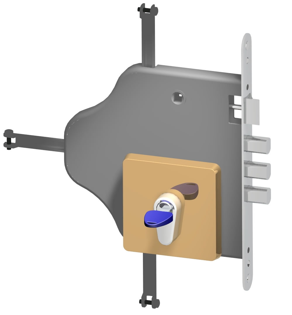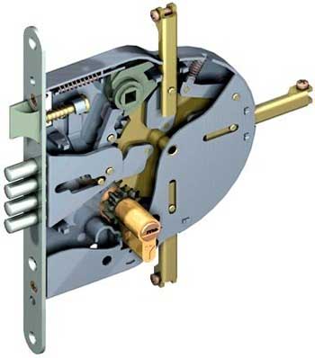 - Привод замка осуществляется при помощи шестереночного механизма (патент Mul-T-Lock)
